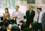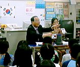 訪問された韓国の先生が、日本の小学生のためにお話をしていただました。この話はテレビ電話を活用して、河内長野市内の楠小学校と石仏小学校の6年生も一緒に聞きました。シン・ドン・キュウ校長先生は、一時的に不幸な関係があっても、長い歴史の中では中国と韓国そして日本は、互いにとても大切な国であり、仲良くしなくてはいけないと話していただきました。