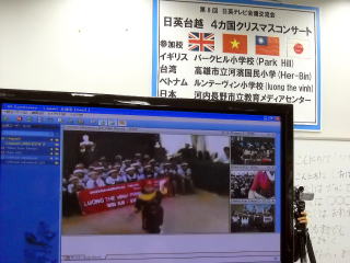 2012年12月18日(火)午後6時よりイギリス・台湾・ベトナム・日本との恒例のクリスマスコンサートかメディアセンターで行われました。今年でこのイギリスとのクリスマスコンサート交流は8回目になります。今回参加していただいたのはイギリス交流校のパークヒル小学校(Park Hill)・台湾は高雄市立河濱国民小学校(Her-bin)・ベトナムはホイヤン市のルンテーヴィン小学校(Iuong the vinh)そして日本は美加の台小学校を中心に河内長野市内の小学生約20名が参加してくれました。