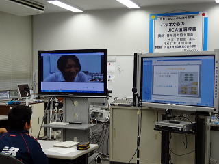 平成27年1月30日(金)午後2時50分より太平洋の島国パラオからの遠隔授業が行われました。今回の講師はパラオの学校で子どもたちのために国際貢献されている水谷先生です。通信関係の問題で、学校からではなくパラオのJICA事務所からの遠隔授業になりました。今回参加いただいたのは美加の台小学校3年生とパソコンクラブでした。授業では、パラオの人たちの生活や、日本とは深いかかわりがあることなどを現地で使われている言葉などを通して教えていただきました。とても楽しい遠隔授業でした。パラオとは幸い、日本との時差がなく、とても取り組みやすいプログラムでした。