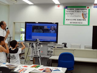 平成27年5月19日(火)日本時間午後4時から、オーストラリアの交流校ボルクストン小学校のナイトスクールに美加の台小学校の放課後児童会の4年生が参加してくれました。 このナイトスクールとは、ボルクストン小学校で毎年行われている行事で、お仕事のために子どもの授業参観に参加できない保護者のためのプログラムです。そのような保護者が夕刻に学校へ行き、子ども達の学習活動を参観します。交流会では、日本語のクラスに訪れた保護者や子ども達と、日本語での簡単な会話やクイズをして楽しみました。