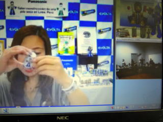 2月24日(金)の日本時間午前6時より、ペルーの国立地球物理研究所とつないだ遠隔電池教室が行われました。遠隔授業の講師は、パナソニック社の末次さんです。またペルー国立地球物理研究所ではJICAの青年海外協力隊員として活躍されている辻埜先生がこのプログラムの準備調整をしていただきました。メディアセンターでは当日、遠隔支援業務をさせていただきました。ペルーの子ども達が夢中になって手作り乾電池に取組んでいる様子がとても印象的でした。