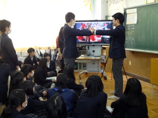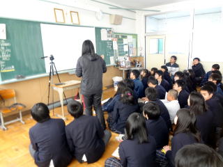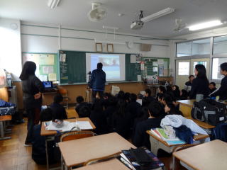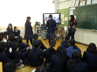 平成29年2月27日(月)午前9時50分より長野中学校3年生とセントポ−ル校6年生との日豪語学協働学習が行われました。長野中学校では、初の取り組みです。最初は緊張していた生徒達も少しずつ会話を楽しめるようになり、用意していたクイズではとても盛り上がりました。最後は時間切れで予定していた発表が全部出来ない状態でしたが、とても楽しく交流を行うことができました。その後、3月6日までに、3年生の全てのクラス、6クラスで日豪の交流授業が行われました。