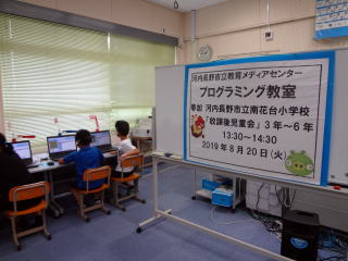 令和元年8月5日(月)夏休み期間中の放課後児童会で、初めてプログラミング教室が開催されました。参加いただいたのは美加の台小学校の放課後児童会の子ども達です。このプログラムには、地域教育推進課の課長さんもご参加いただき、一緒に子ども達への指導にあたっていただきました。美加の台小学校の放課後児童会では8月9日(金)にも2回目のプログラミング教室が行われました。また、千代田小学校でも8月7日(水)と21日(水)に、放課後児童会の子ども達にプログラミング教室が行われました。南花台小学校では8月20日(火)に行われました。プログラミング教室に参加支援いただいた皆様に感謝いたします。本当に、ありがとうございました。