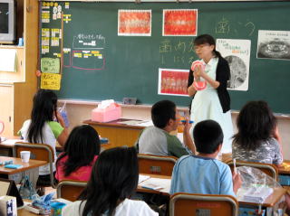 平成19年10月5日、歯科衛生指導が4年生を対象に行われました。日頃はあまり意識しない歯の大切さや、歯磨きの仕方についていろいろ教えていただきました。歯科衛生指導の方からは、お話だけでなく、興味深い様々な資料を提示していただき、みんな楽しく学習することができました。本当にありがとうございました。