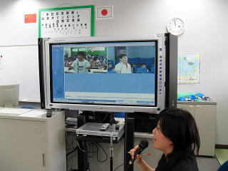 平成20年6月12日(木)午後2時45分から、中国山東省山東大学附属第2小学校と美加の台小学校5年生3組の31名との交流授業が行われました。河内長野市立教育メディアセンターにおいても中国とのテレビ会議による交流授業は、初めてです。おそらく全国的にも数少ない取り組みだと考えています。今後、このような日中の教育交流によって21世紀の両国の友好関係を少しでも促進させることができればと考えています。今回この授業の計画進行をしていただいたのは、大阪教育大学大学院に留学されている呉さんです。通訳支援もしていただきました。本当にありがとうございました。