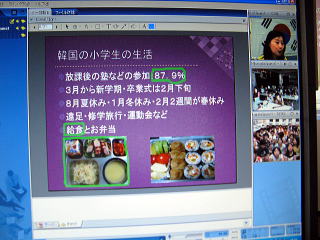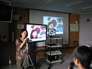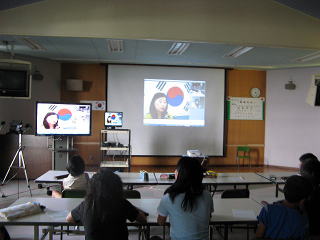 平成21年6月19日(金)午後2時55分から、大阪府国際交流財団の韓国留学生成恵珍さんによる遠隔授業が行われました。授業では韓国の文化や生活について様々な写真資料などを見せていただきながら、分かりやすく教えていただきました。クイズなども用意していただき、とても楽しい遠隔授業でした。本当にありがとうございました。今回の授業には美加の台小学校のパソコンクラブと加賀田小学校5年生が参加しました。