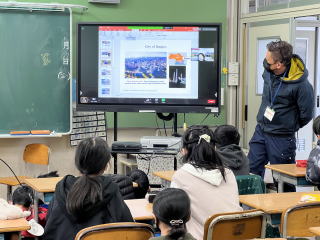 | 加賀田小学校でのウクライナの先生の遠隔授業 |