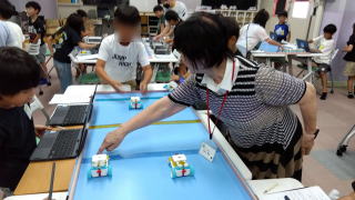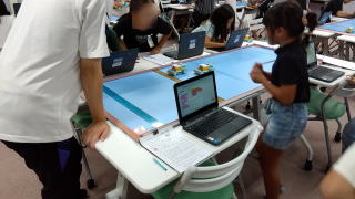2025年9月5日(金)2学期最初のロボカーでのプログラミング出前授業が千代田小学校で行われました。授業は3クラスを4時間目と午後の5.6時間目に行いました。子ども達のほとんどは、初めての経験でとても楽しく進級表に沿って、プログラミングに挑戦してくれました。